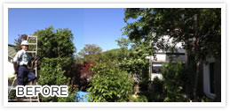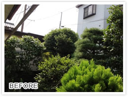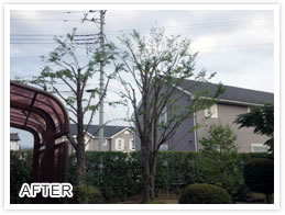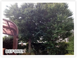 高木の樹高を下げるとともに枝透かしをおこないました。風通しが良くなったと好評をいただきました。
