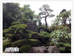 カテゴリ 植木の手入れ 施工内容 庭木剪定 お悩み 庭石で積み上げられた高低差あるお庭のため、高齢の庭師サンでは心配。 概要 松3本 高木・低木一式
