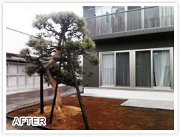 カテゴリ 植木の手入れ 施工内容 移植 お悩み 新居に黒松をもっていきたい。 概要 門かぶりの黒松(樹高3m 枝張り6m)移植
