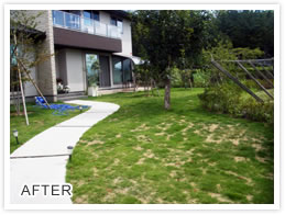 カテゴリ 造園工事 施工内容 植栽工事 お悩み 一面芝を敷いて広い開放的なお庭にしたい。