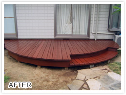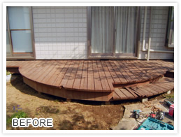 カテゴリ その他 施工内容 ウッドデッキ修繕 お悩み ウッドデッキの老朽化により破損したり色落ちしたりしてしまい、困っている。 概要 破損箇所の交換1式 既存塗装をはがして腐朽防止塗装剤を塗布
